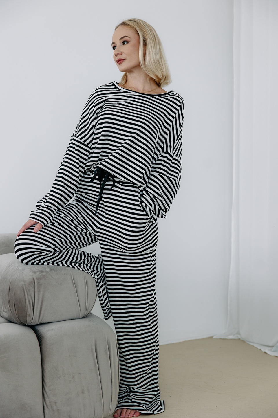 MIA — damska piżama prążkowana / komplet loungewear / oversize